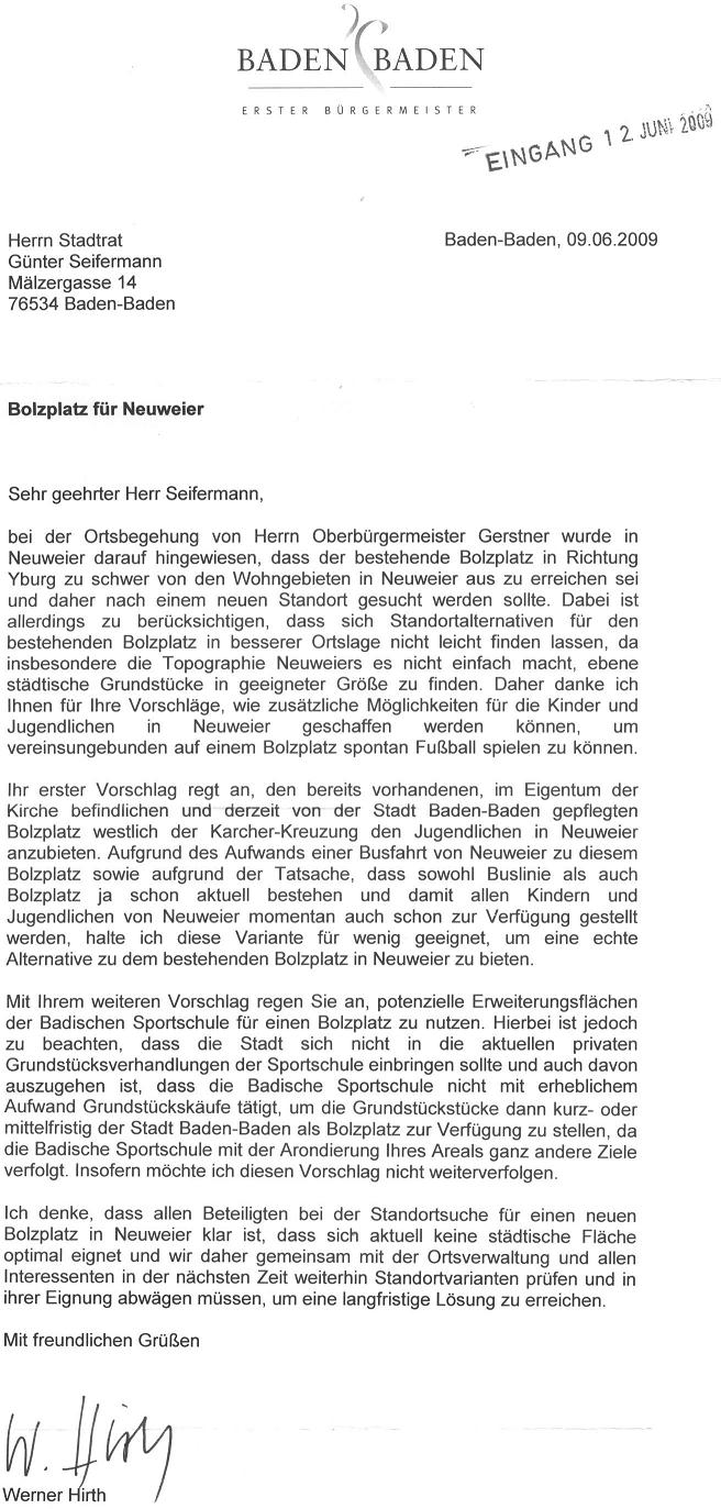 Bitte prüfen Sie diese beiden Vorschläge und kommen damit vielleicht einer Lösung des Bolzplatzproblems in Neuweier einen Schritt weit näher.
