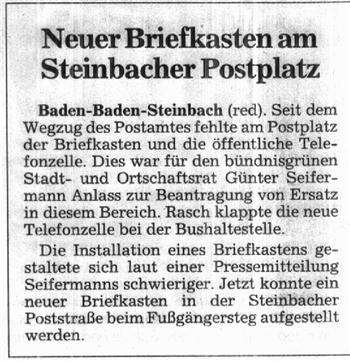 Ohne die Anträge der bündnisgrünen Rebland-Ortschaftsratsfraktion gäbe es heute weder den Briefkasten, noch die Telefonzelle!