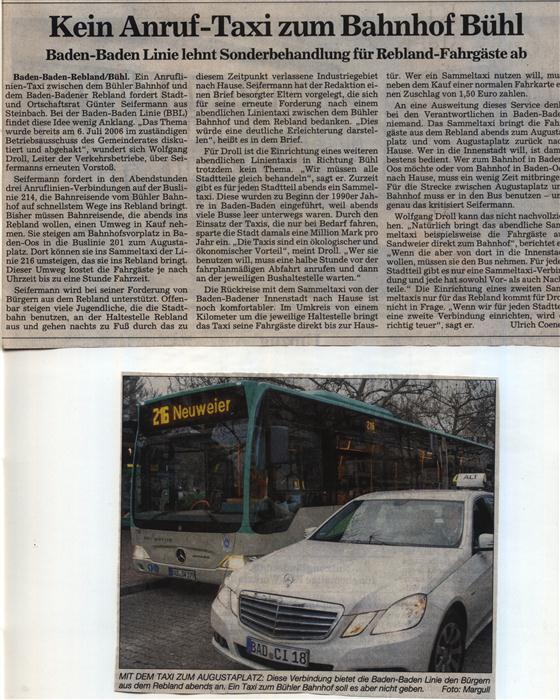 Im Rahmen der Beratungen über die von der Stadt empfohlenen “Einsparmöglichkeiten im Buslinienangebot der Baden-Baden-Linie (BBL) stellte Stadt-und Ortschaftsrat Günter Seifermann für die bündnisgrünen Fraktionen in Gemeinderat und Ortschaftsrat Rebland mündlich und schriftlich für den Bereich des Reblandes (Buslinien 216, 261, 214) den nachstehenden Gegen- und Alternativantrag: