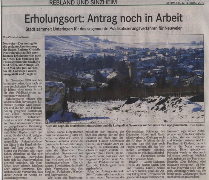 Badisches Tagblatt vom 17.Februar 2010