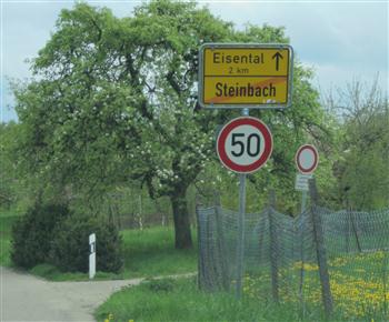 Nun wurde jedoch in der Gegenrichtung direkt nach dem Ortsausgangsschild im Eisentaler Weg das Schild „Geschwindigkeitsbegrenzung auf 50 km/h“ montiert, was diese Begrenzung bis nach Eisental empfiehlt und vorschreibt.