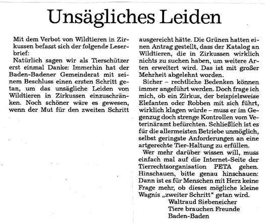 Badisches Tagblatt vom 28.November 2012……………… Leserbrief in BNN vom 30.11.12 und Bad.Tagblatt vom 01.12.12