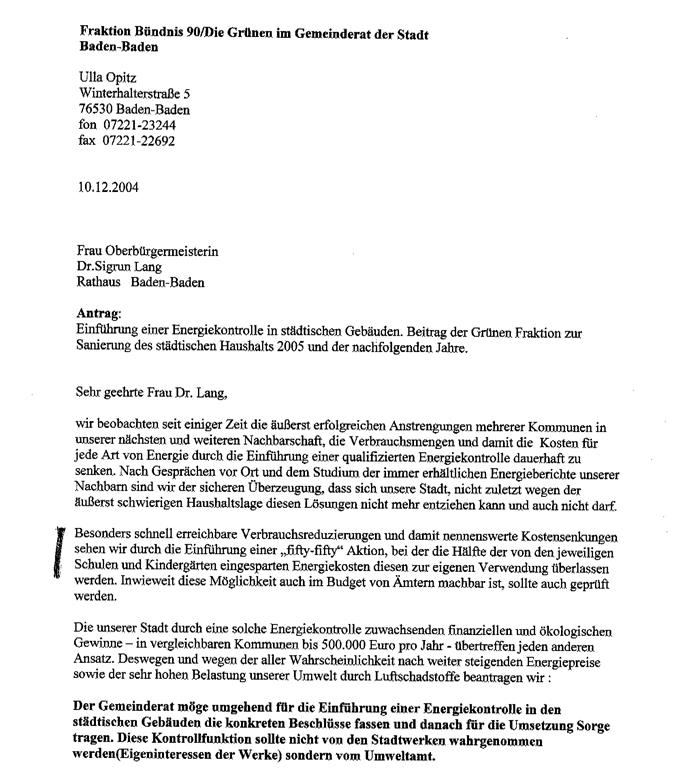 Neun Jahre nach Antragstellung hat endlich der damalige Antrag von B90/Die GRÜNEN im Baden-Badener Gemeinderat einstimmige Zustimmung erfahren. Das freut ganz besonders, wenn auch in der Sitzungsvorlage für die Behandlung im Gemeinderat die antragstellende GRÜNEN-Fraktion mit keinem Wort erwähnt wird.