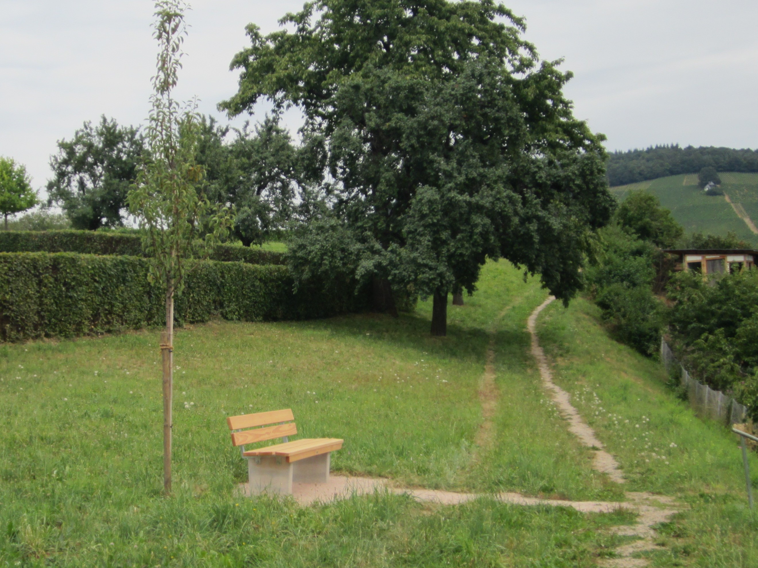 Durch Blitzschaden wurde der alte Birnbaum am Zugang von der Steinbacher Yburgstraße zum neuen Friedhof zerstört. Viele -vor allem ältere- MitbürgerInnen haben die Ortschaftsratsfraktion der Rebland-Grünen umd Aktivitäten gebeten, dass Ersatzpflanzung und Wiederaufstellung der inzwischen ebenfalls entfernten Sitzbank wieder erfolgen: