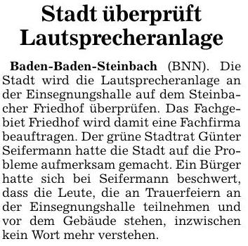 Günter Seifermann Stadt- und Ortschaftsrat B90/Die GRÜNEN Baden-Baden-Steinbach