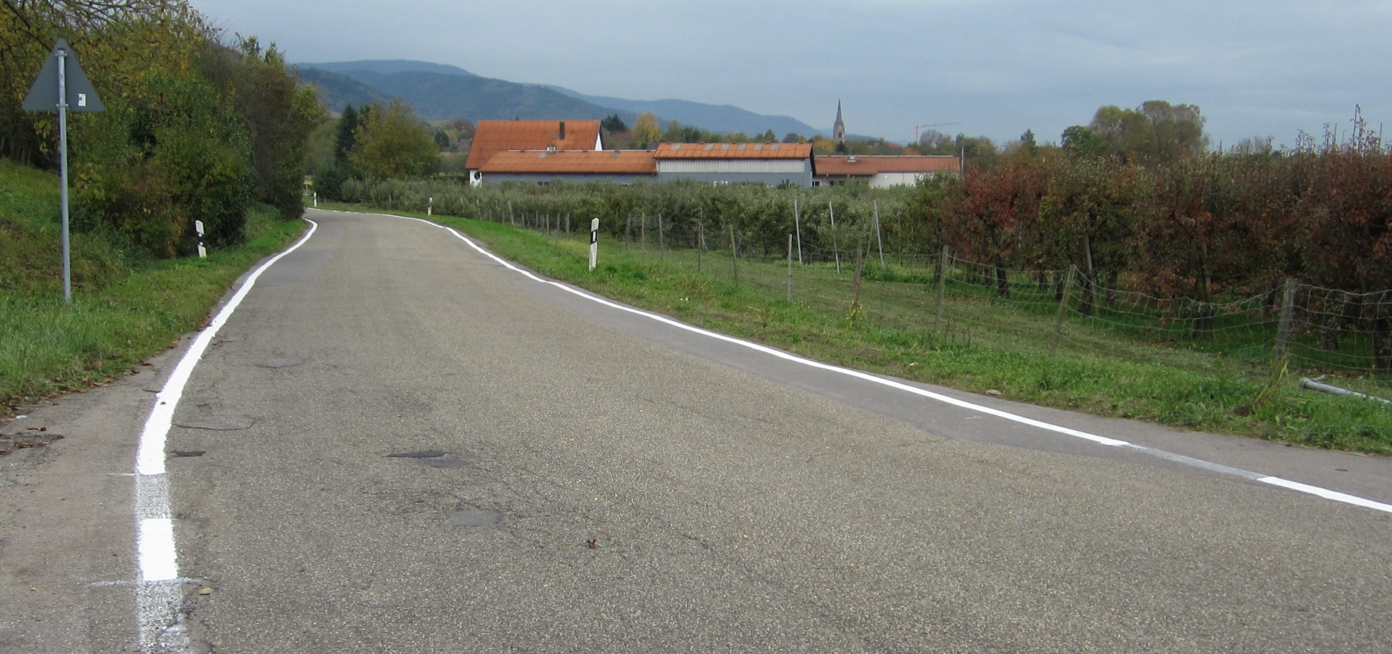 Endlich Fahrbahnrandmarkierungen in der südlichen Steinbacher Straße Richtung Bühl