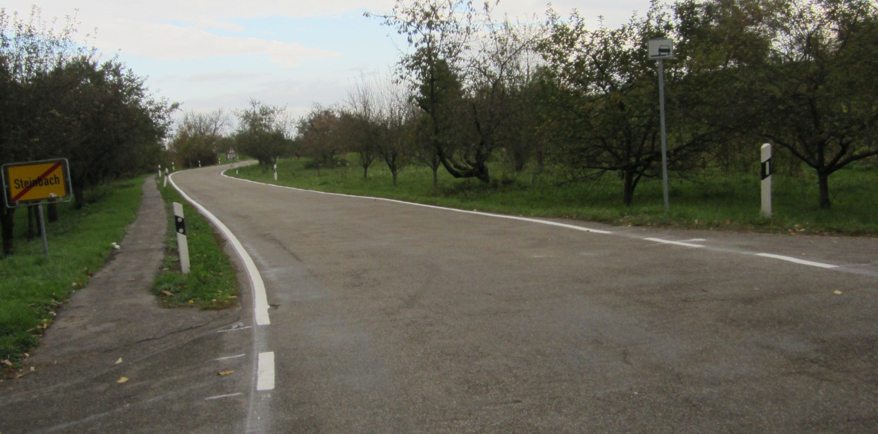 Genau 5 Jahre und vieler Errinnerungen und Bitten hat es gedauert, bis nun endlich am 20. Oktober 2017 in der Alten Landstraße zwischen dem nördlichen Ortsausgang Steinbachs und der Gemarkungsgrenze Sinzheim die am 14. November 2012 erstmals von Günter Seifermann beantragten Fahrbahn-Randmarkierungen aufgebracht wurden.