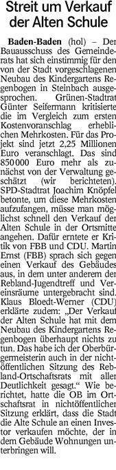 Bericht und Kommentar Badisches Tagblatt vom 12. Oktober 2016
