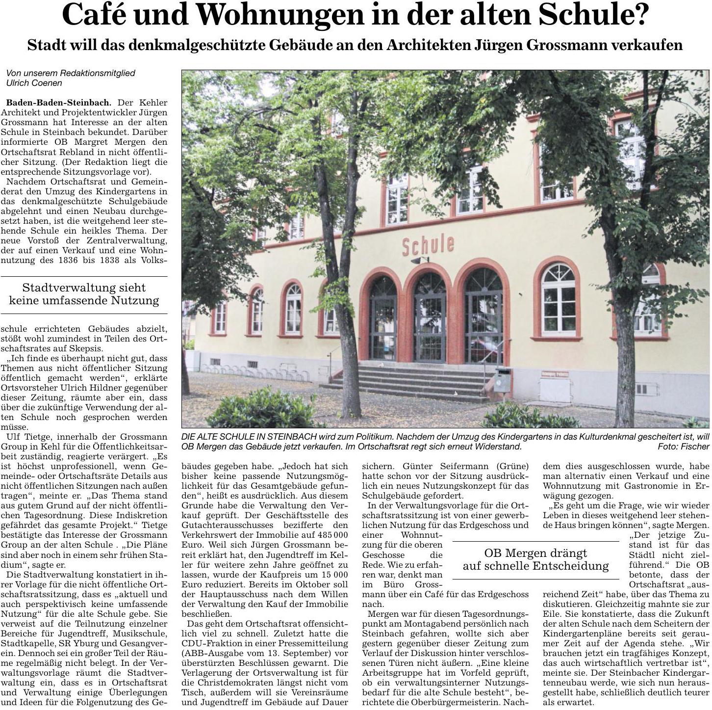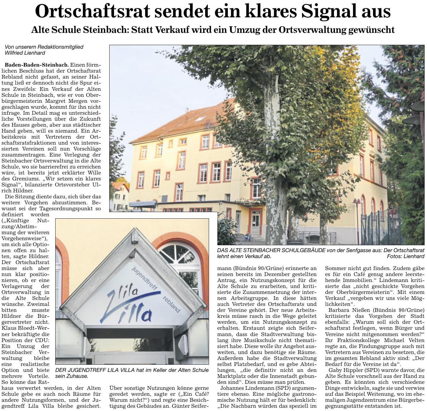 Diese Entscheidung schafft nun die Möglichkeit, in der − verkehrsgünstig in der Ortsmitte gelegenen − alten Schule Räumlichkeiten für die Ortsverwaltung Rebland, die Musikschule Baden-Baden und örtliche Vereine bereitzustellen, ohne dadurch den im Keller seit Jahrzehnten erfolgreichen Jugendtreff Rebland zu beeinträchtigen. Gleichzeitig wird dadurch zu einer Belebung des Steinbacher Städtls beigetragen.