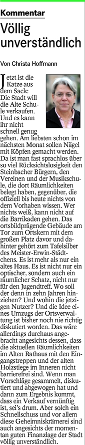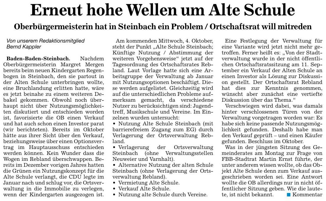 Bericht und Kommentar Badisches Tagblatt vom 14. September 2017