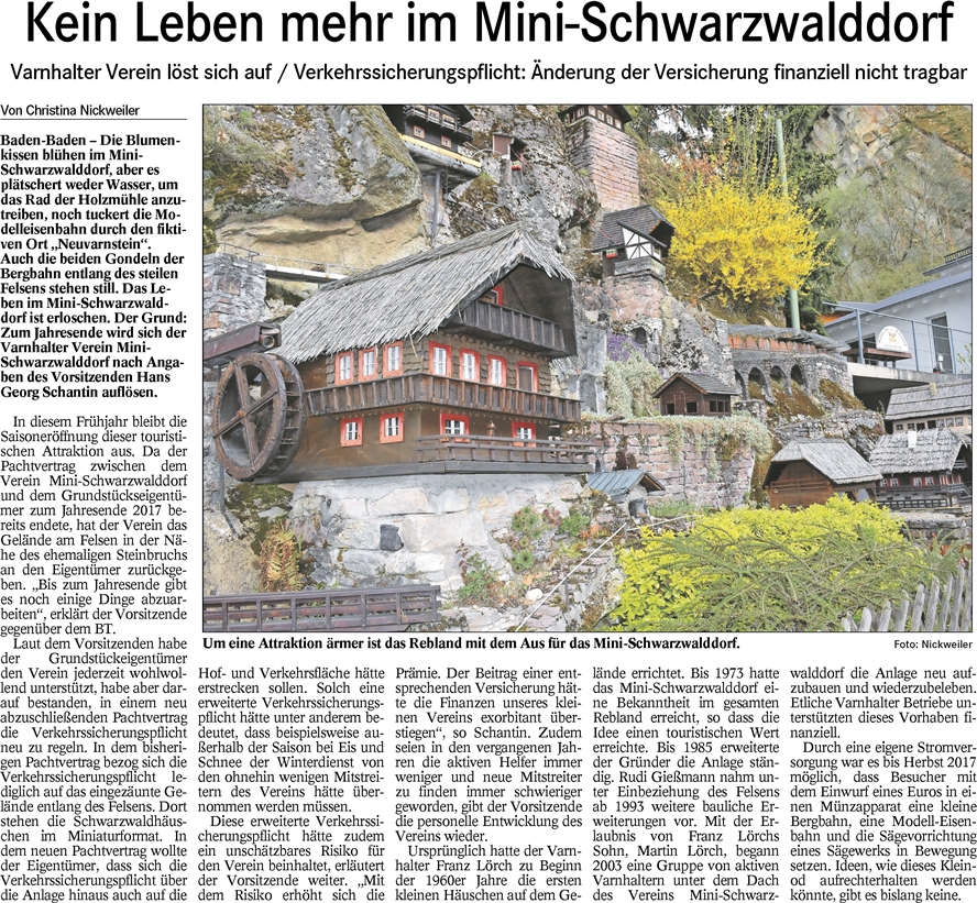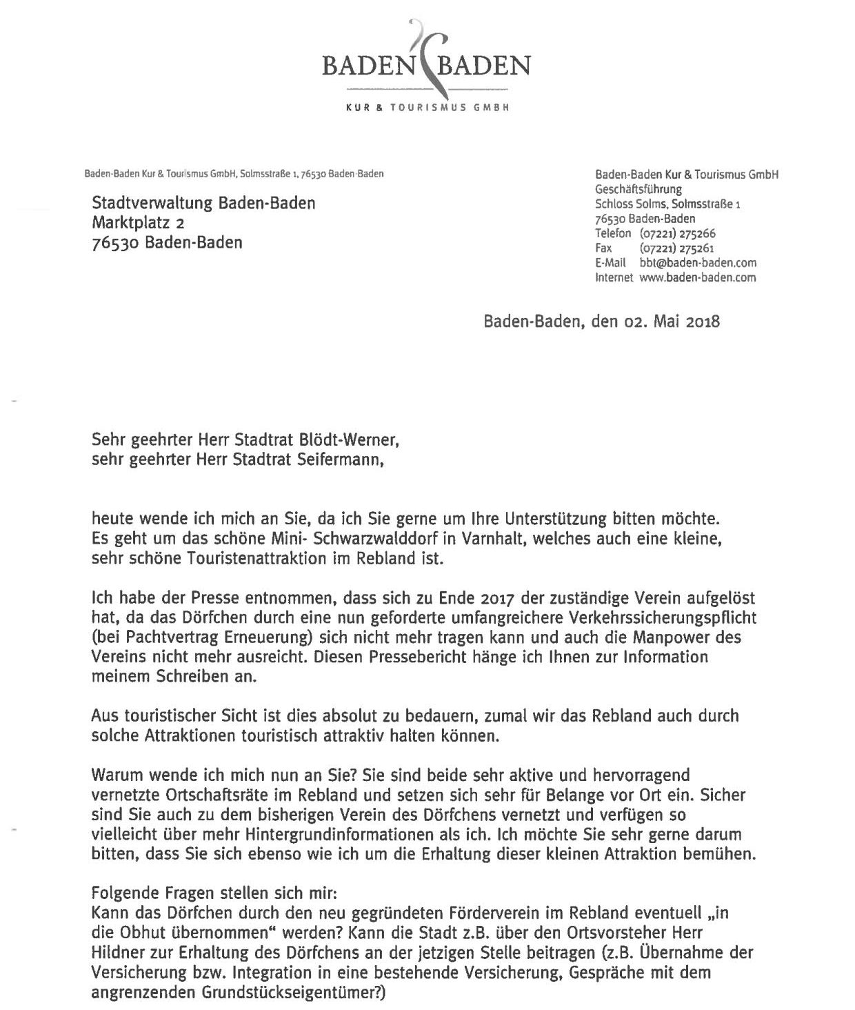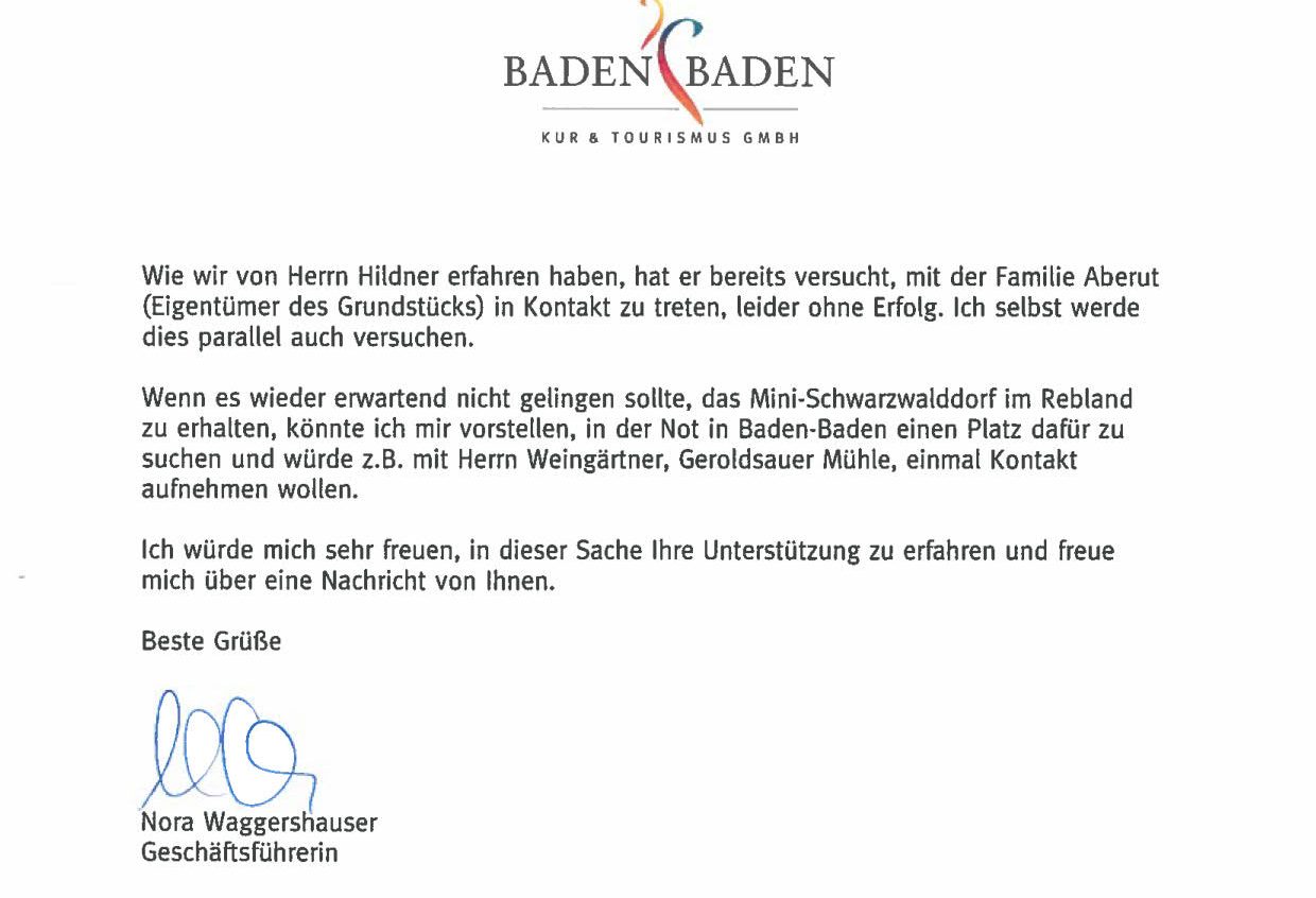Brief an Frau Waggershauser wg. Mini-Schwarzwalddorf